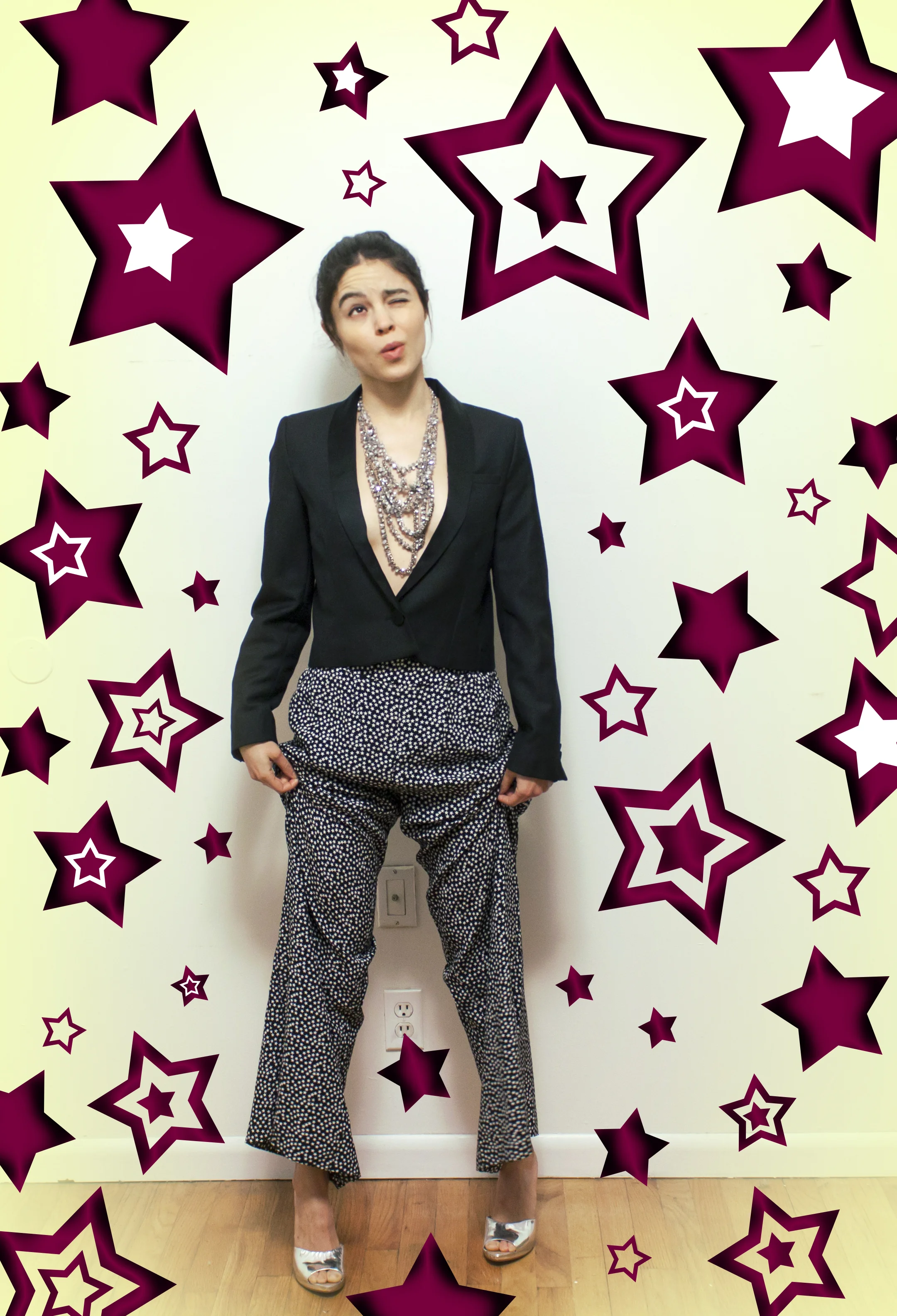 I hate bras. Mine is the first thing I take off when I get home, even before pants. I like it better when stuff can jiggle freely (run wild, little nips, the world is your oyster!). It’s much more comfortable. Wearing a bra, personally, is equivalent to someone hugging me for too long. It’s nice at first, maybe even ultra snug in a way that feels pleasant, but after a while the only panicked thought churning through my teensy head is, “I CAN’T BREATHE, WHAT IS THIS, GET IT OFF GET IT OFF.” So, if you're of the same opinion, try wearing a blazer without a bra. There are three options you have in doing this. One, wear it with double-sided tape, thus securing shit stays in place. Two, not wear it with double-sided tape, and give zero fucks about who sees what. Or three—my favorite—walk around all day with your hands holding your blazer still, and act as if that's something all regular people do.